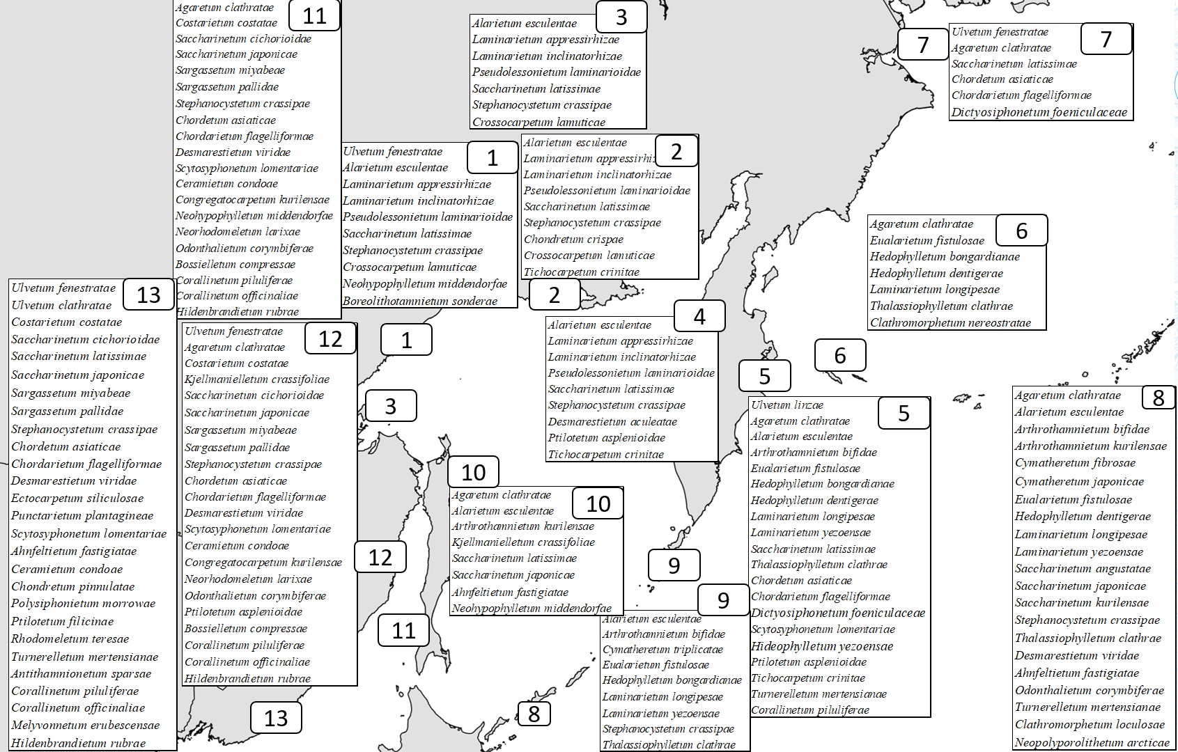 Настоящая работа преследовала цель выявить принципиальные возможности сравнения и общие характеристики сложения сублиторальной морской растительности различных районов Дальнего Востока России.
