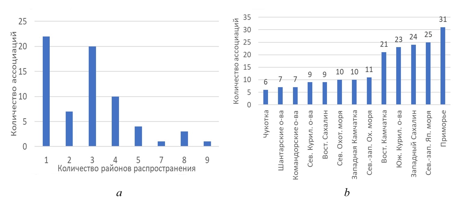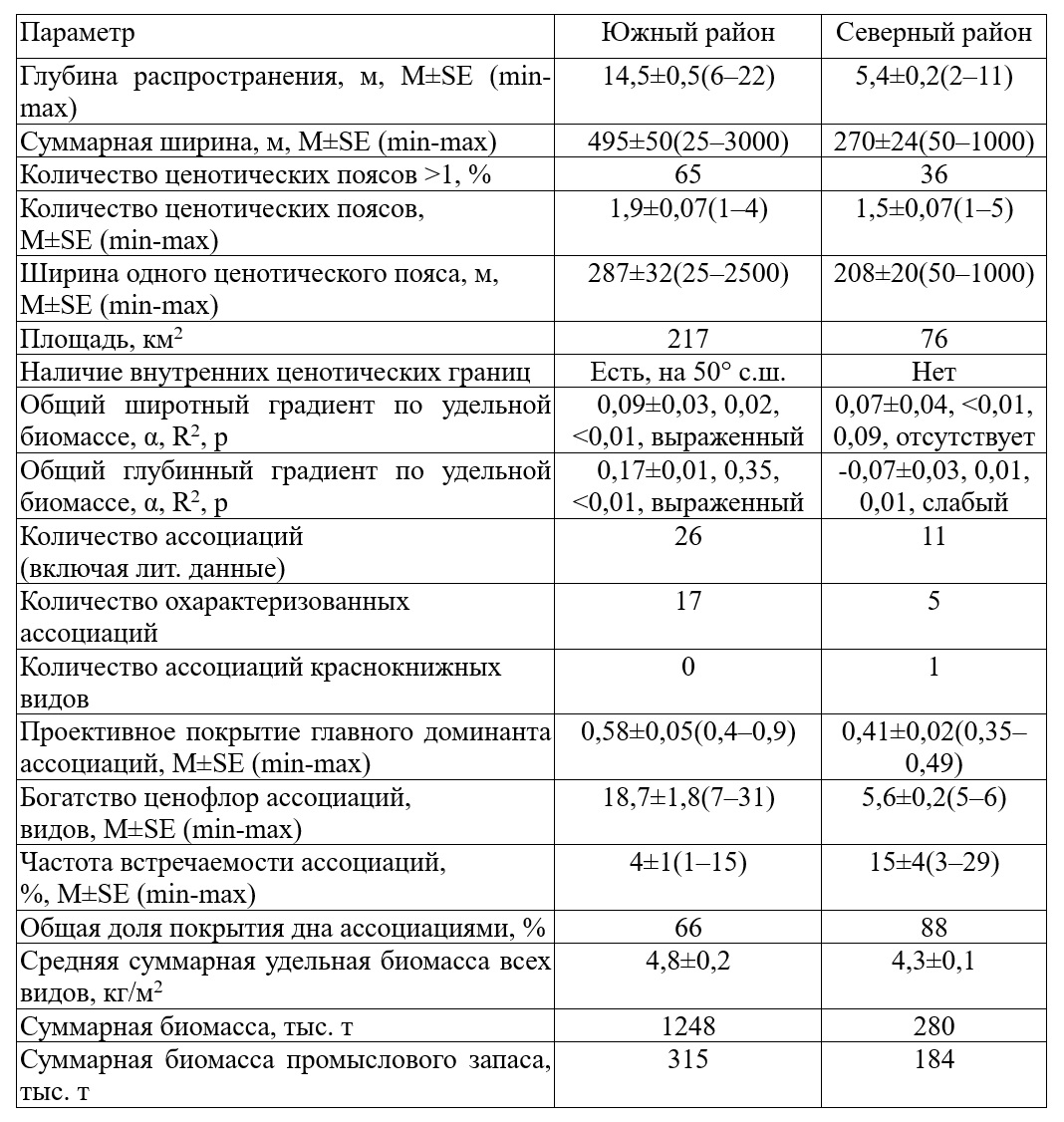 4. Наибольшее ценотическое богатство следует предполагать в Приморье, наименьшее – в самых северных районах, а также у Шантарских островов и у восточного Сахалина.